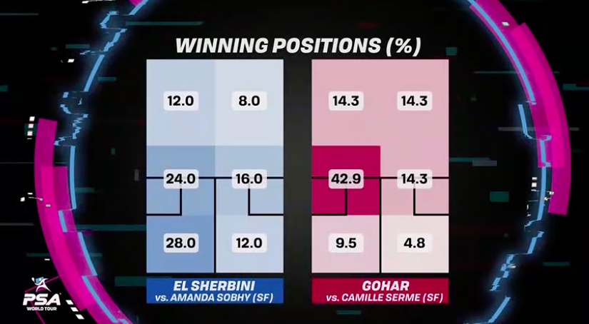Ahead of the women’s World Championships final, our charts showed how Nour El Sherbini hit a lot of Winners from deep in her semifinal against Amanda Sobhy, while Nouran Gohar hit the majority of her Winners from mid-court vs Camille Serme